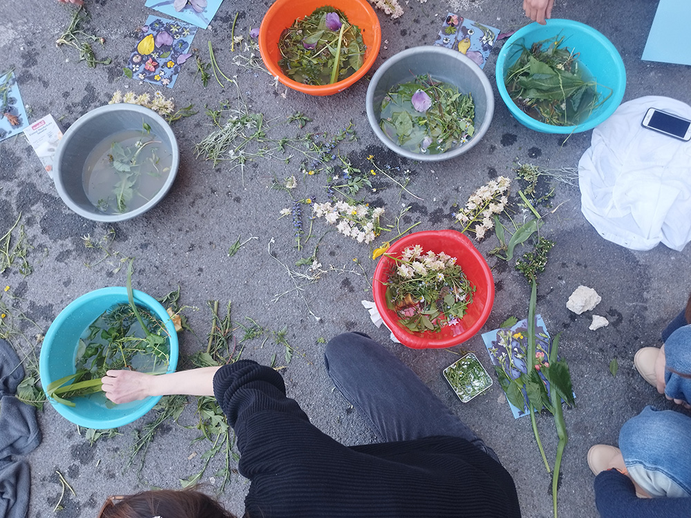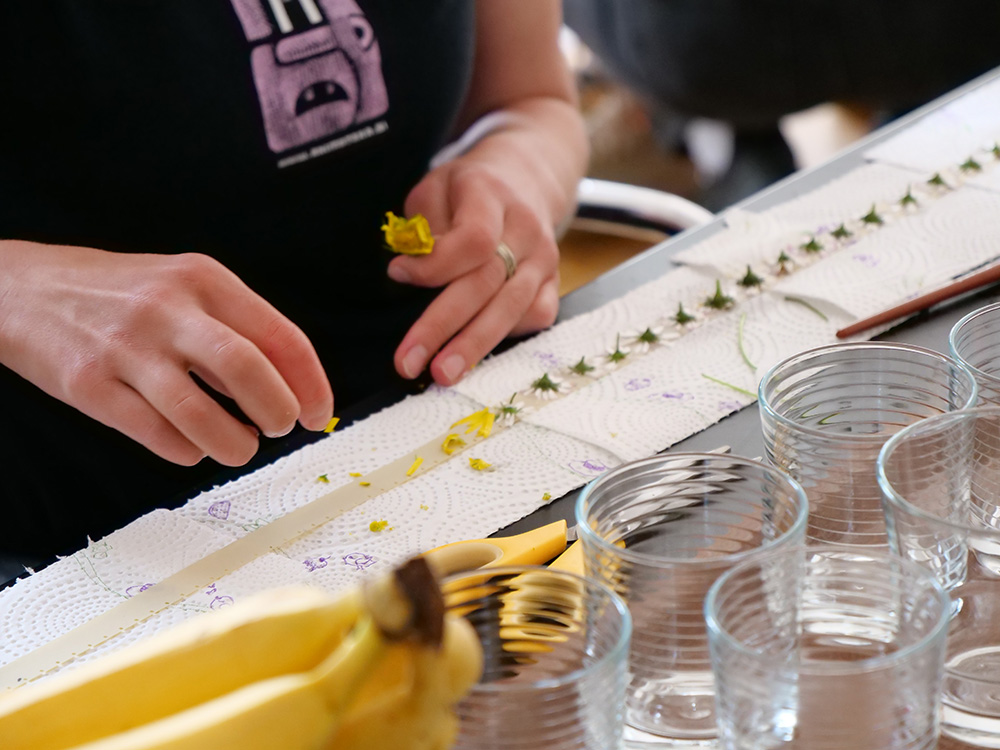 Introduction to the phytogram-making process. Phytogram is a technique where images, colours and textures are created on photographic paper or filmstrip without chemicals, only with the help of a chemical reaction upon contact with plants.