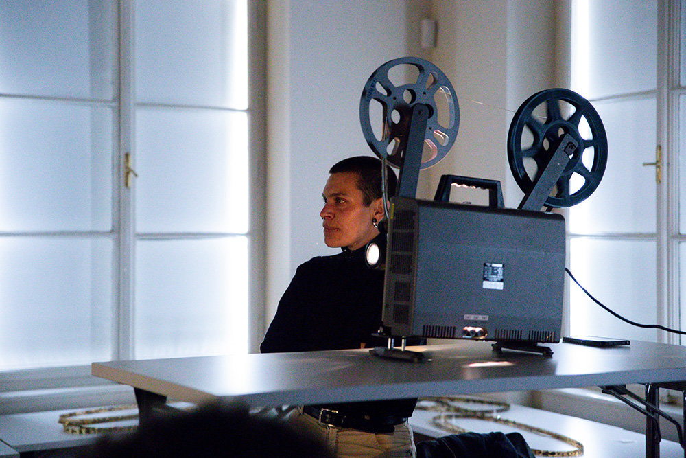Introductory presentation of experimental film’s history and presentation of works by authors working with 16 mm film. Participants will learn how to use and work with the film projector. Introduction to the various chemical and mechanical processes that enable the creation of a moving image: developing and analogue dubbing, double exposure (with a recording or in the darkroom), experimenting and intervening directly on the filmstrip in different stages (before developing in the darkroom and when the tape is already unrolled).