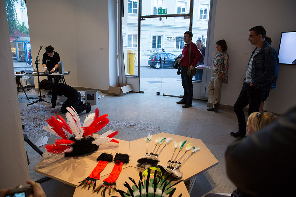 Performance, a mechanical, audio and visual event Artist–Bureaucrat by artistic duo IvAn (Iva Tratnik and Andreja Džakušič) will take place at the opening of the exhibition.