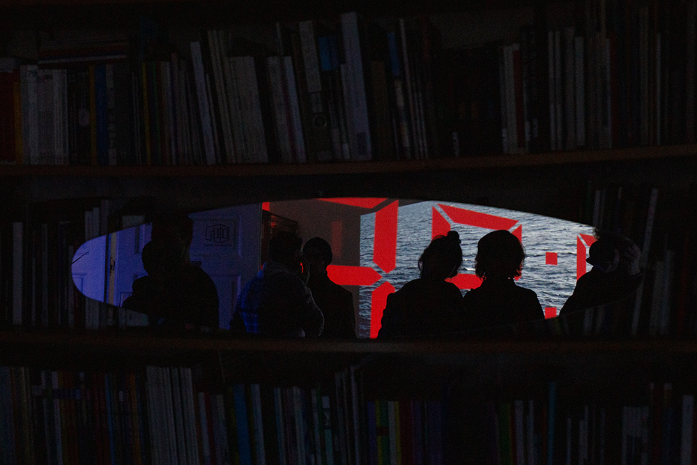 With a spatial installation of projections and mirrors, the artist will also present various elements of her installation: documentary videos and photographs of performative action From Sea To Sea; redesigned tools for measuring time; flashing light installation NowHere combined with older time-based works and new ongoing projects. Playing with different signifiers of time can open up a space for reflection on the meaning structure of contemporary perception and the sense of time – exactly the topic that will be discussed by artist and curator in their dialogue as a performative part of the installation.