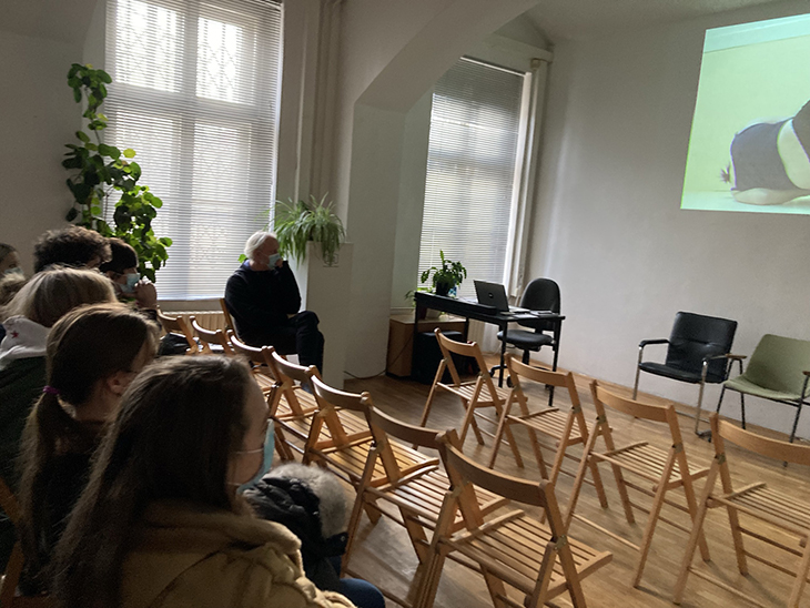 Konec novembra smo pripravili diskurzivno delavnico za dijakinje in dijake 3. letnikov umetniške gimnazije Srednje šole za oblikovanje in fotografijo pri predmetu Osnove varovanja dediščine pod mentorstvom pedagoga, umetnika in bivšega sodelavca SCCA Damijana Kracine. Delavnica je potekala v dveh delih, udeležila pa sta se je dva razreda. V prvem delu je Damijan Kracina v razredu predstavil kratko zgodovino video umetnosti s poudarkom na slovenskem prostoru, v drugem delu pa sta razreda obiskala Projektno sobo SCCA na Metelkovi 6.