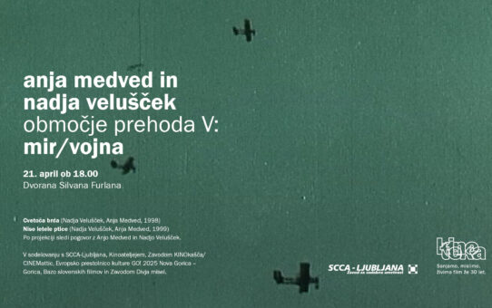 Anja Medved in Nadja Velušček: Območje prehoda V: mir / vojna Projekcija in pogovor Torek, 21. 4. 2026, 18.00 Slovenska kinoteka in spletna projekcija na BSF (21.–28. 4.)