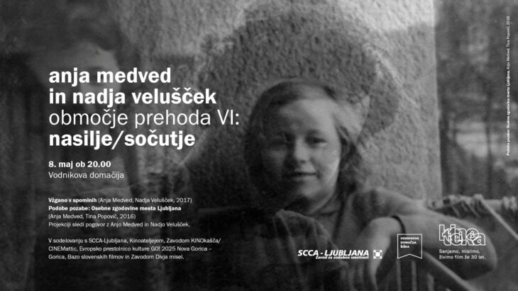 Kinotečni program se v majskem terminu seli na Vodnikovo domačijo, kjer so bila pred desetletjem razstavljena ljubljanska pričevanja o času med in po drugi svetovni vojni na razstavi Podobe pozabe: Osebne zgodovine mesta Ljubljana. Del programa bo dostopen tudi na Bazi slovenskih filmov (BSF), kjer si bo mogoče ogledati preostala dela Anje Medved in Nadje Velušček. Pregled njunega opusa se umešča v že tradicionalna sodelovanja med SCCA-Ljubljana in Slovensko kinoteko, kjer smo doslej prikazali retrospektive ključnih avtoric in avtorjev na področju videa: Miho Vipotnika, Emo Kugler, Marka A. Kovačiča, Nevena Kordo in Natašo Prosenc Stearns.