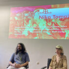 Nika Tomažič (1995) je vizualna umetnica iz Ljubljane, ki deluje na presečišču novih medijev, intermedije, filma in videa. V svojem delu raziskuje nasprotja in dvojnosti, ki jih hkrati kontrastira in zrcali. »Resno«, poglobljeno umetnost povezuje z igrivo, humoristično produkcijo, preko katere relativizira svet, umetnost in sebe. Navdih črpa iz naravoslovja, tehničnih znanosti, filozofije, mistike, humorja in internetne kulture. Njeni filmi in razstave so bili predstavljeni tako v Sloveniji kot v tujini. Za kratki film O čustvih in drugem zakonu termodinamike je leta 2020 prejela nagrado FIPRESCI za najboljši slovenski film na Festivalu FeKK, leta 2022 pa prvo nagrado za projekt Automata na festivalu MFRU. (Foto: Marijo Županov)