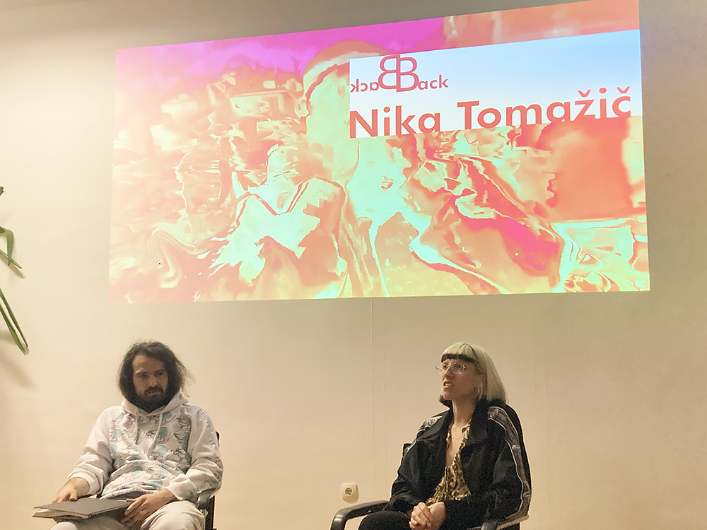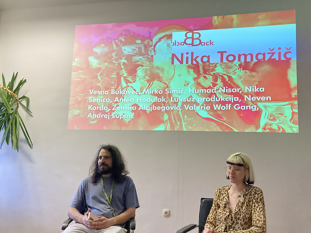 V okviru dogodkov Back2Back vabimo domače in mednarodne avtorice_je, da predstavijo svojo produkcijo in vzpostavijo dialog z deli iz arhiva Postaja DIVA po lastnem izboru. Tokrat v goste prihaja vizualna umetnica Nika Tomažič, ki deluje na področju novih medijev, intermedije, filma in videa. Program iz arhiva postaje DIVA je zasnovala na podlagi svojega zadnjega kratkega filma Jaz, dekonstruirano (2024).