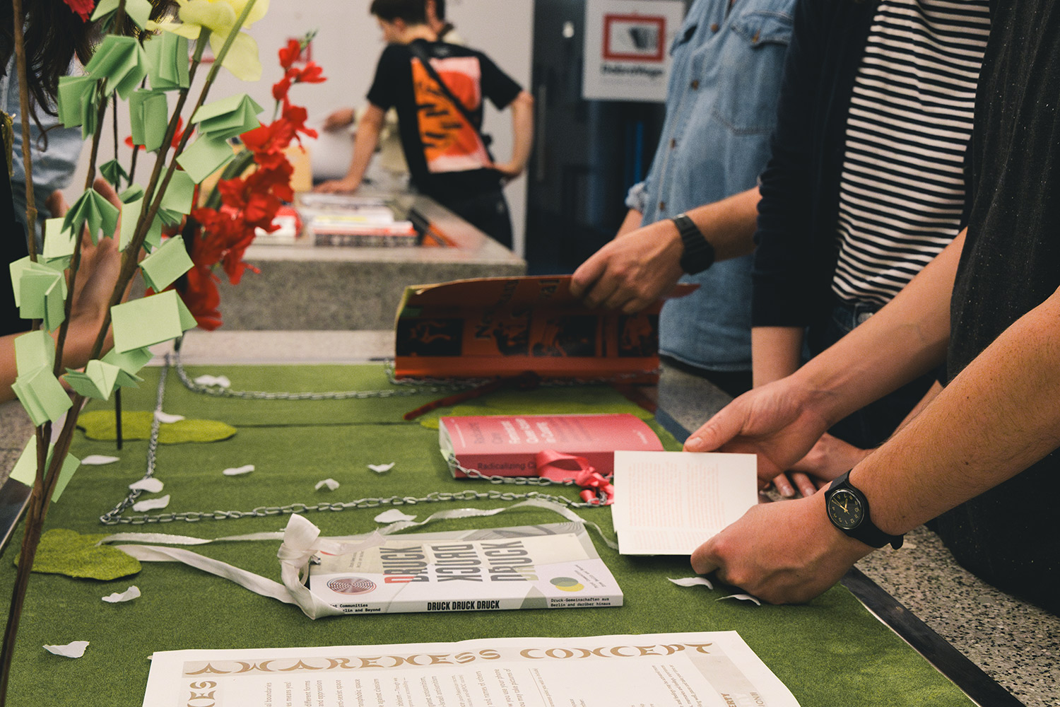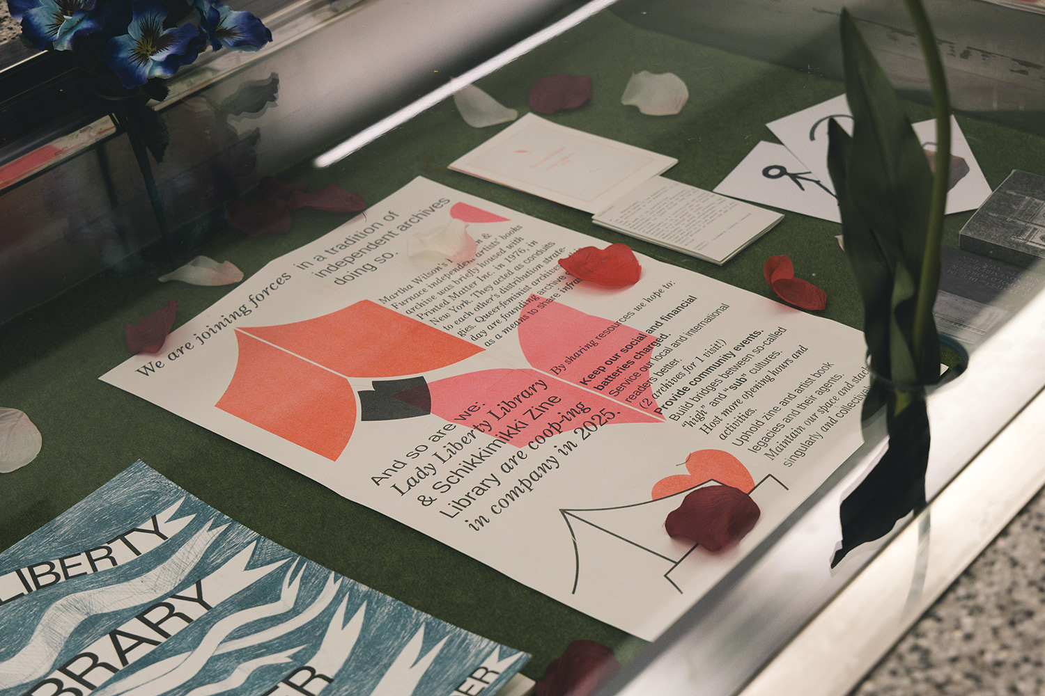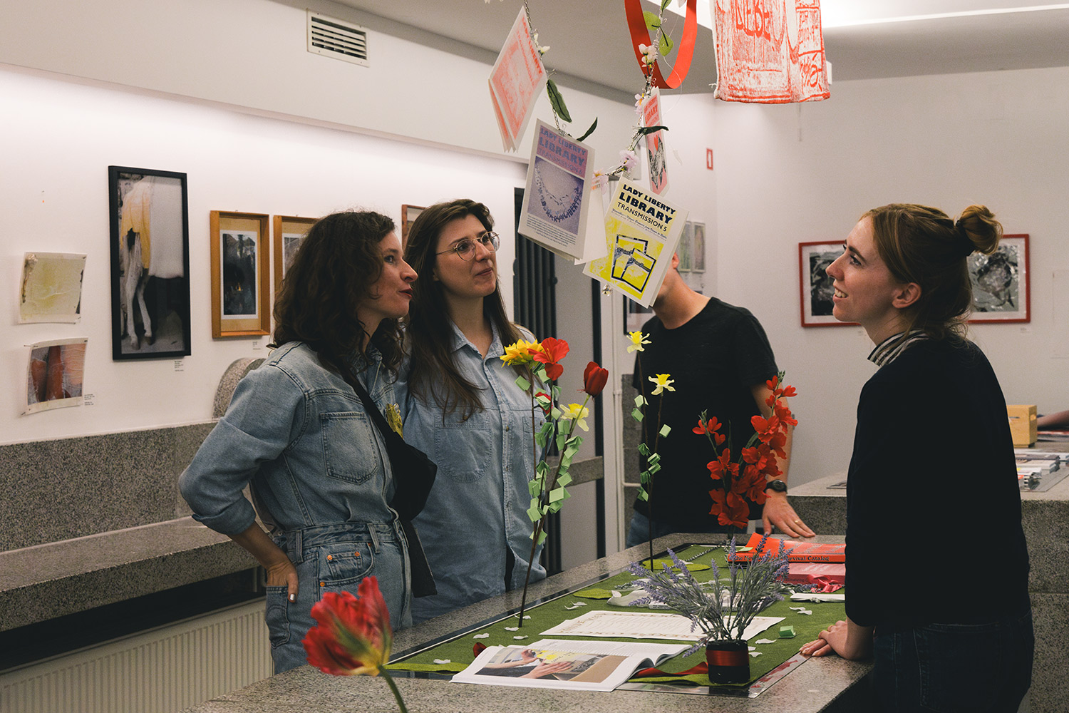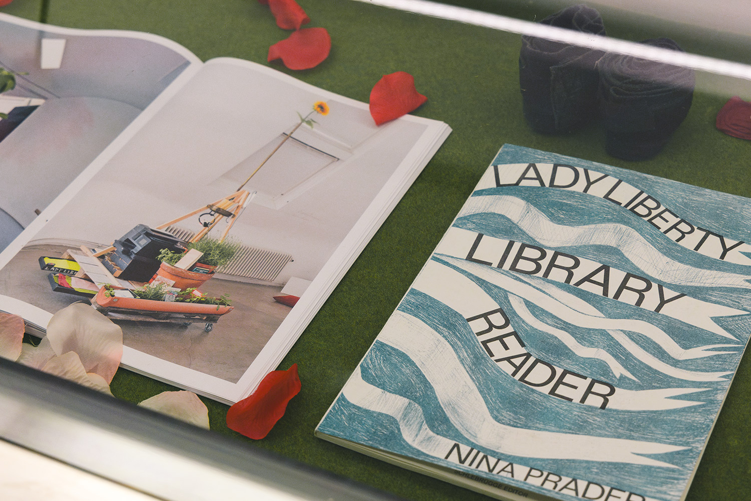 For the exhibition, the gallery’s ZINE VITRINE section will be transformed into a community garden and publication flower bed. Understanding the vitrine as an open flower box for planting printed matters, Nina Prader will exhibit publications and banners, celebrating 10 years of planting libraries and independent publishing under her label as Lady Liberty Press & Libraries.