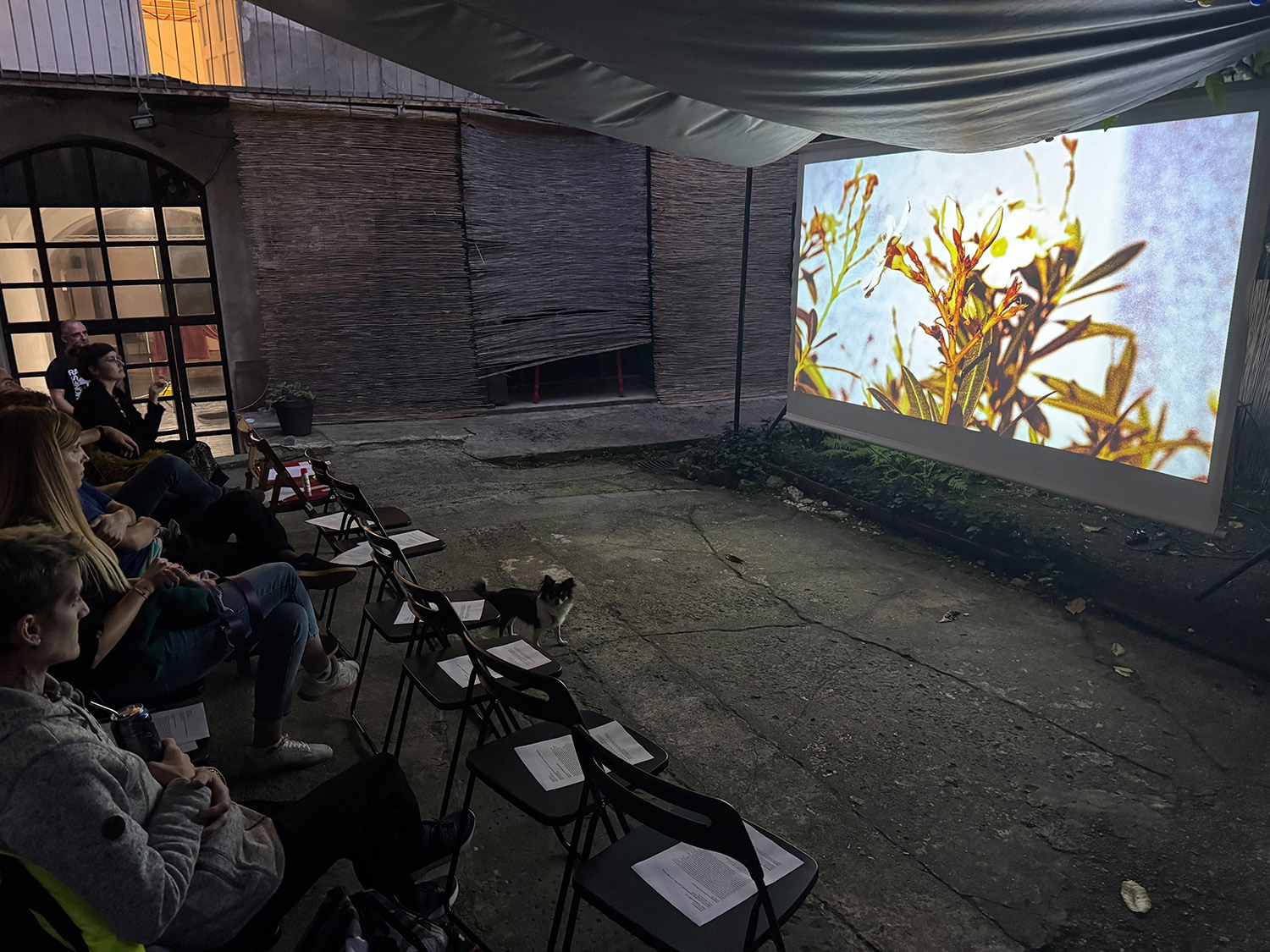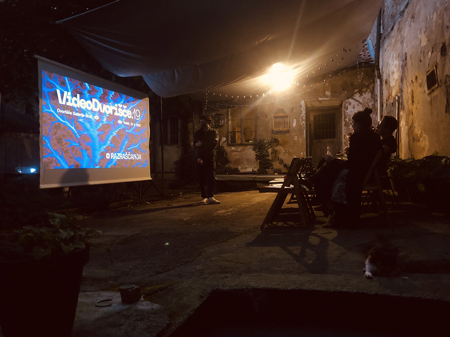 VideoDvorišče je program kuriranih projekcij in pogovorov o umetnosti, videu in filmu. V spomladansko-poletnem obdobju stopamo iz temne kinodvorane in hladnega galerijskega prostora ven, na prosto. V sodelovanju z Galerijo Škuc pripravljamo dogodke na njihovem notranjem dvorišču.